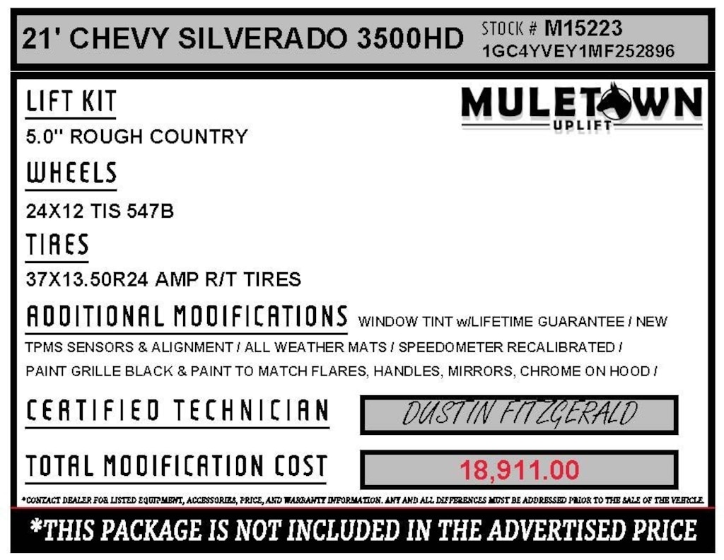 Command the road with purpose and presence in this 2021 Chevrolet Silverado 3500HD High Country, transformed with our exclusive Muletown Uplift 5" Lift Kit and aggressive 37" tires for maximum capability and head-turning style. This truck is built for those who demand strength, utility, and refinement in equal measure.