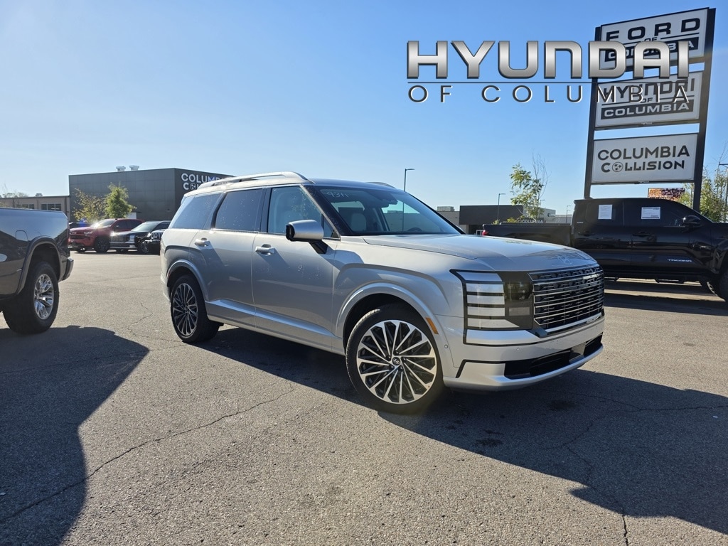 Palisade Calligraphy, 4D Sport Utility, Typhoon Silver Metallic, 14 Speakers, ABS brakes, All-Season Fitted Liners, Apple CarPlay & Android Auto, Auto High-beam Headlights, Auto-dimming door mirrors, Auto-dimming Rear-View mirror, Auto-leveling suspension, Brake assist, Delay-off headlights, Exterior Parking Camera Rear, Front Bucket Seats, Front Center Armrest, Front dual zone A/C, Fully automatic headlights, Heated & Ventilated Front Bucket Seats, Heated door mirrors, Heated rear seats, Heated steering wheel, HVAC memory, Leather steering wheel, Memory seat, Option Group 01, Power door mirrors, Power driver seat, Power Liftgate, Power moonroof, Power passenger seat, Premium Nappa Leather Seat Trim, Radio: Infotainment Navigation System, Rain sensing wipers, Rear air conditioning, Rear audio controls, Rear window wiper, Remote keyless entry, Speed control, Split folding rear seat, Spoiler, Steering wheel mounted audio controls, Telescoping steering wheel, Tilt steering wheel, Turn signal indicator mirrors, Variably intermittent wipers, Ventilated rear seats, Wheels: 21" x 8.5J Alloy.