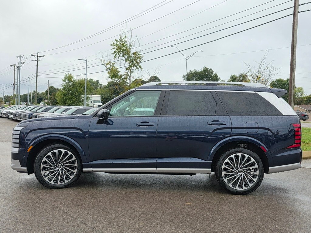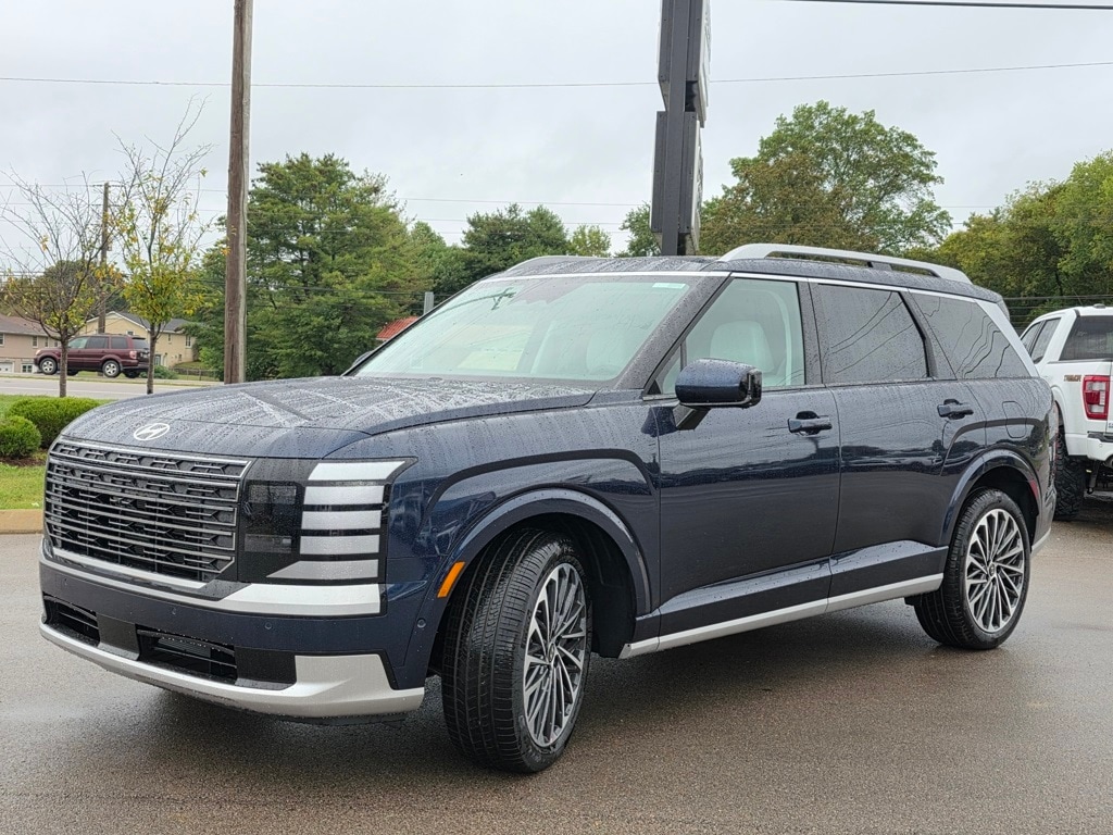 Palisade Calligraphy, 4D Sport Utility, Classy Blue Pearl, Gray/Navy w/Premium Nappa Leather Seat Trim, 14 Speakers, ABS brakes, Apple CarPlay & Android Auto, Auto High-beam Headlights, Auto-dimming door mirrors, Auto-dimming Rear-View mirror, Auto-leveling suspension, Brake assist, Delay-off headlights, Exterior Parking Camera Rear, First Aid Kit, Front Bucket Seats, Front Center Armrest, Front dual zone A/C, Fully automatic headlights, Heads-Up Display, Heated & Ventilated Front Bucket Seats, Heated door mirrors, Heated rear seats, Heated steering wheel, HVAC memory, Leather steering wheel, Memory seat, Option Group 01, Power door mirrors, Power driver seat, Power Liftgate, Power moonroof, Power passenger seat, Premium Nappa Leather Seat Trim, Radio: Infotainment Navigation System, Rain sensing wipers, Rear air conditioning, Rear audio controls, Rear window wiper, Remote keyless entry, Speed control, Split folding rear seat, Spoiler, Steering wheel mounted audio controls, Telescoping steering wheel, Tilt steering wheel, Turn signal indicator mirrors, Variably intermittent wipers, Ventilated rear seats, Wheels: 21" x 8.5J Alloy.
