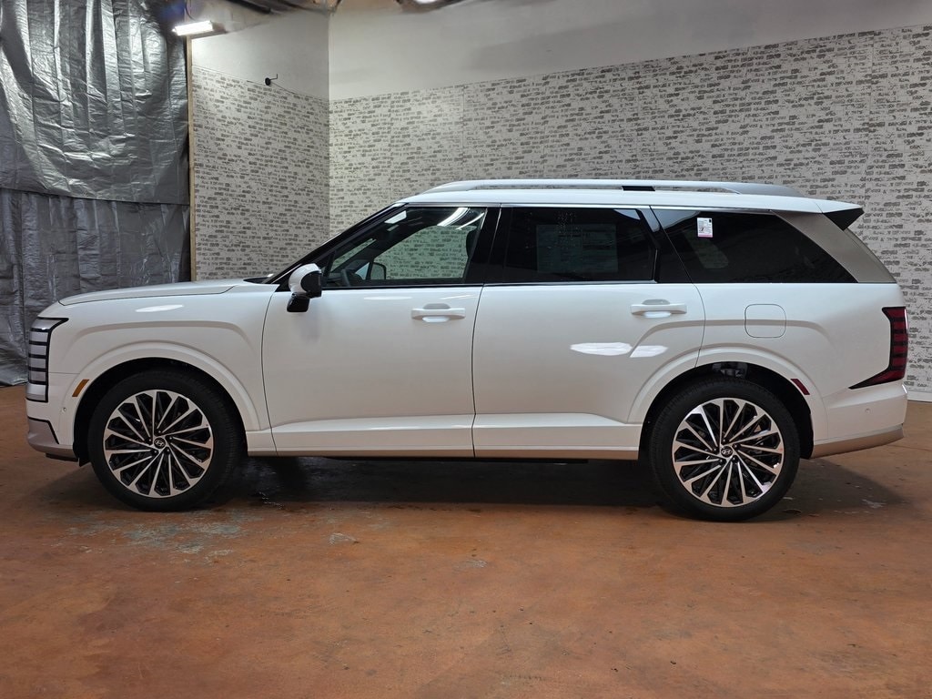 Palisade Calligraphy, 4D Sport Utility, Creamy White Pearl, 14 Speakers, ABS brakes, AM/FM radio: SiriusXM, Apple CarPlay & Android Auto, Auto High-beam Headlights, Auto-dimming door mirrors, Auto-dimming Rear-View mirror, Auto-leveling suspension, Brake assist, Delay-off headlights, Exterior Parking Camera Rear, First Aid Kit, Front Bucket Seats, Front Center Armrest, Front dual zone A/C, Fully automatic headlights, Heads-Up Display, Heated & Ventilated Front Bucket Seats, Heated door mirrors, Heated rear seats, Heated steering wheel, HVAC memory, Leather steering wheel, Memory seat, Option Group 01, Power door mirrors, Power driver seat, Power Liftgate, Power moonroof, Power passenger seat, Premium Nappa Leather Seat Trim, Radio: Infotainment Navigation System, Rain sensing wipers, Rear air conditioning, Rear audio controls, Rear window wiper, Remote keyless entry, Speed control, Split folding rear seat, Spoiler, Steering wheel mounted audio controls, Telescoping steering wheel, Tilt steering wheel, Turn signal indicator mirrors, Variably intermittent wipers, Ventilated rear seats, Wheels: 21" x 8.5J Alloy.