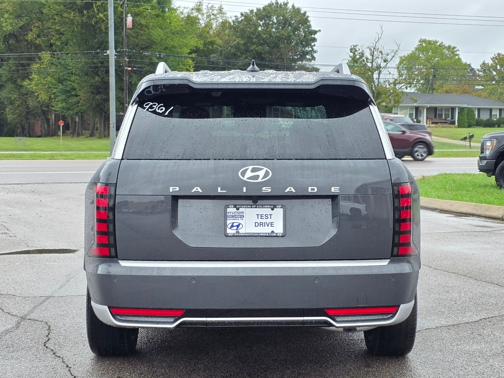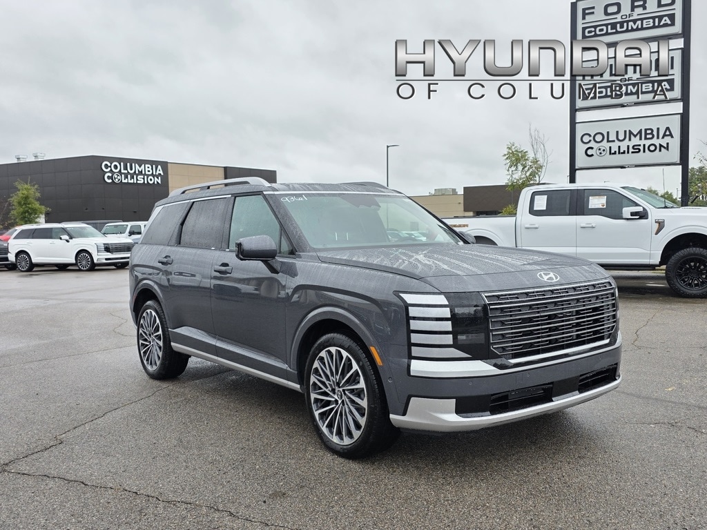 Palisade Calligraphy, 4D Sport Utility, Ecotronic Gray Pearl, 14 Speakers, ABS brakes, AM/FM radio: SiriusXM, Apple CarPlay & Android Auto, Auto High-beam Headlights, Auto-dimming door mirrors, Auto-dimming Rear-View mirror, Auto-leveling suspension, Brake assist, Delay-off headlights, Exterior Parking Camera Rear, First Aid Kit, Front Bucket Seats, Front Center Armrest, Front dual zone A/C, Fully automatic headlights, Heads-Up Display, Heated & Ventilated Front Bucket Seats, Heated door mirrors, Heated rear seats, Heated steering wheel, HVAC memory, Leather steering wheel, Memory seat, Option Group 01, Power door mirrors, Power driver seat, Power Liftgate, Power moonroof, Power passenger seat, Premium Nappa Leather Seat Trim, Radio: Infotainment Navigation System, Rain sensing wipers, Rear air conditioning, Rear window wiper, Reclining 3rd row seat, Remote keyless entry, Roadside Assistance Kit, Speed control, Spoiler, Steering wheel mounted audio controls, Telescoping steering wheel, Tilt steering wheel, Turn signal indicator mirrors, Variably intermittent wipers, Ventilated rear seats, Wheels: 21" x 8.5J Alloy.