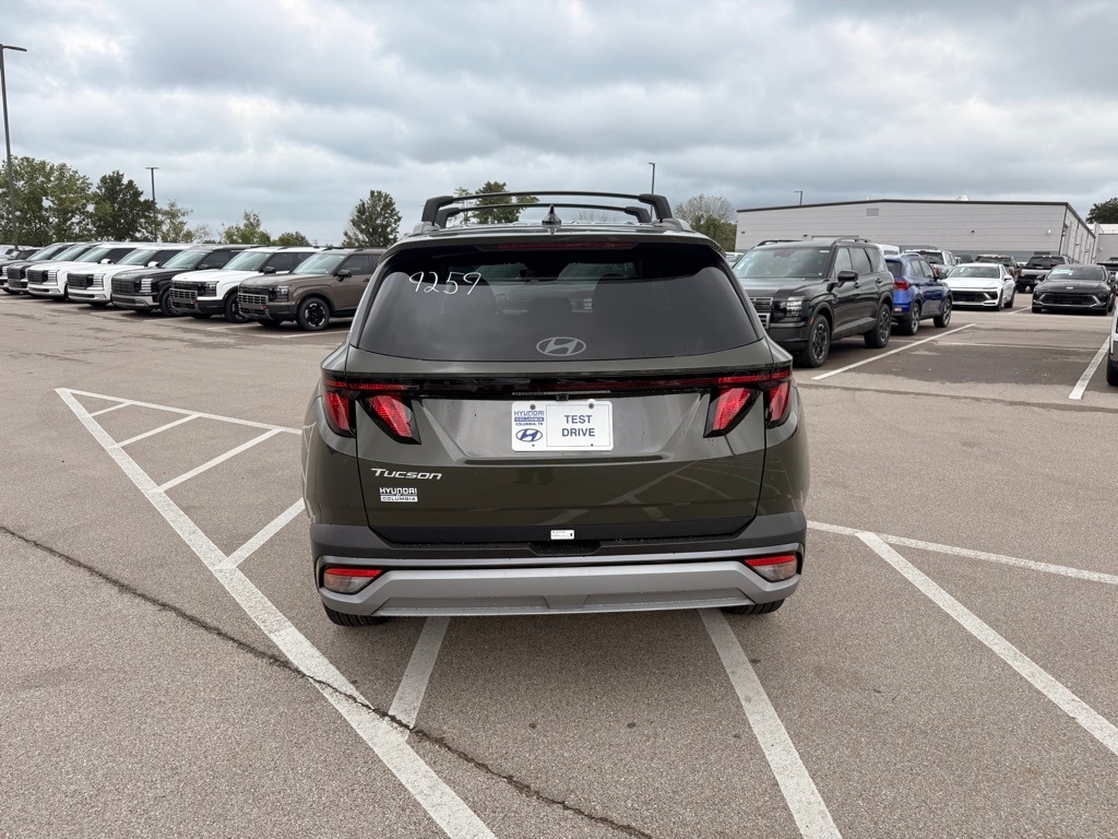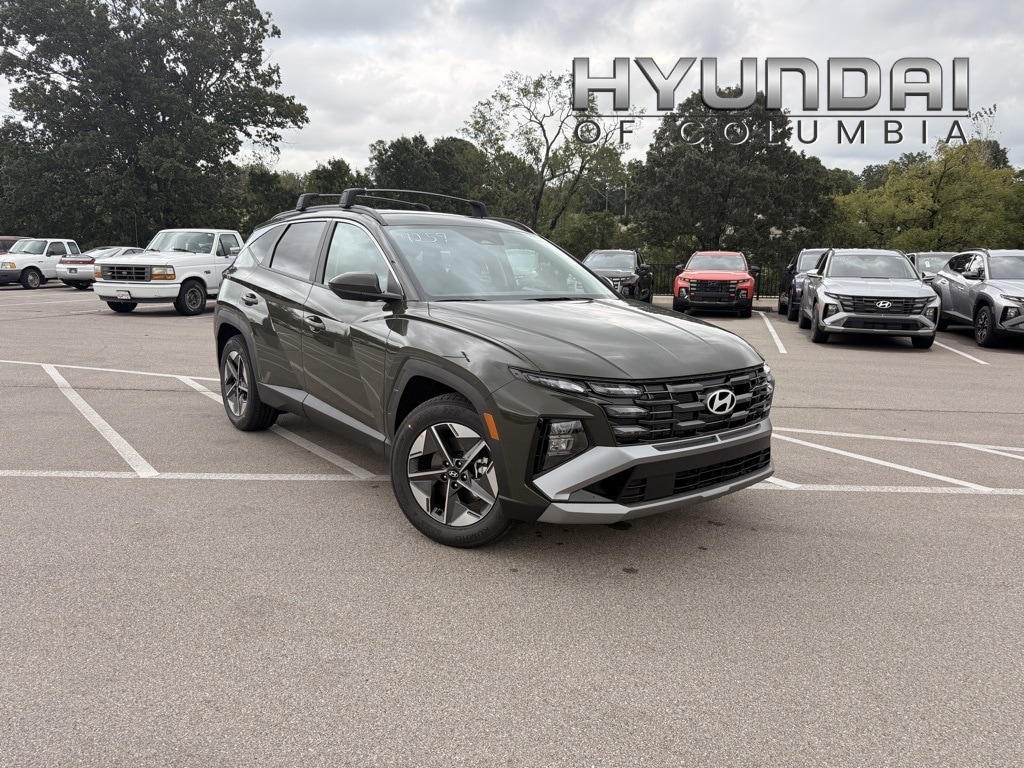 Tucson SEL, 4D Sport Utility, Rockwood Green, 18" x 7.5J Alloy Wheels, ABS brakes, Apple CarPlay & Android Auto, Auto High-beam Headlights, Brake assist, Delay-off headlights, First Aid Kit, Front Bucket Seats, Front Center Armrest, Front dual zone A/C, Fully automatic headlights, Heated door mirrors, Heated Front Bucket Seats, Option Group 01, Power door mirrors, Power driver seat, Power Liftgate, Radio: AM/FM/HD Audio System, Rear window wiper, Remote keyless entry, Roof Rack Cross Rails, Speed control, Split folding rear seat, Spoiler, Steering wheel mounted audio controls, Telescoping steering wheel, Tilt steering wheel, Variably intermittent wipers.