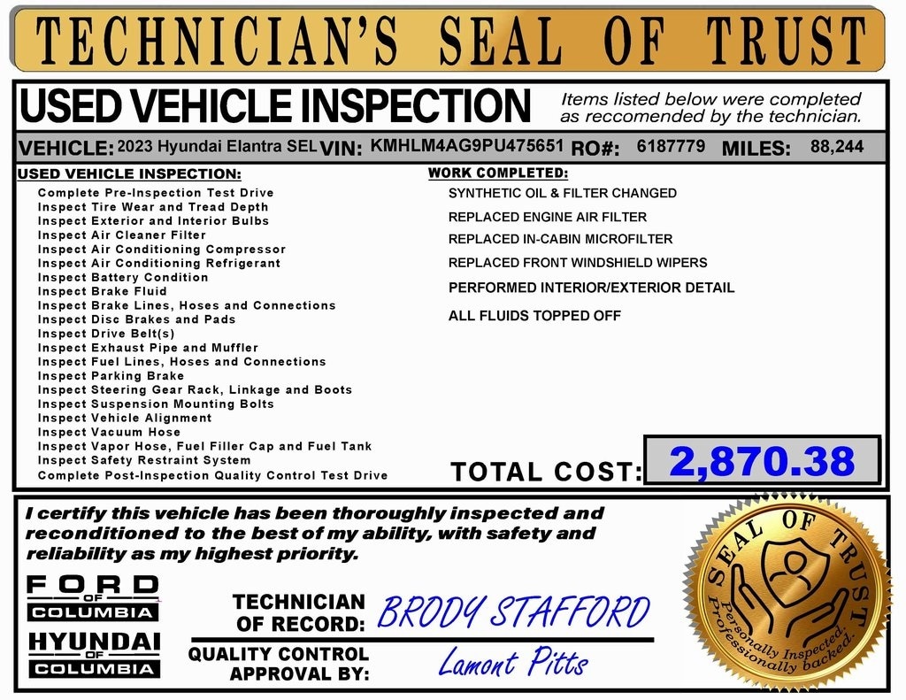 At Hyundai of Columbia, we’re committed to a hassle-free, customer-first experience. If you want a good deal, you’ve found it! Optional upgrades are available but are not included in the advertised price. See dealer for complete details.