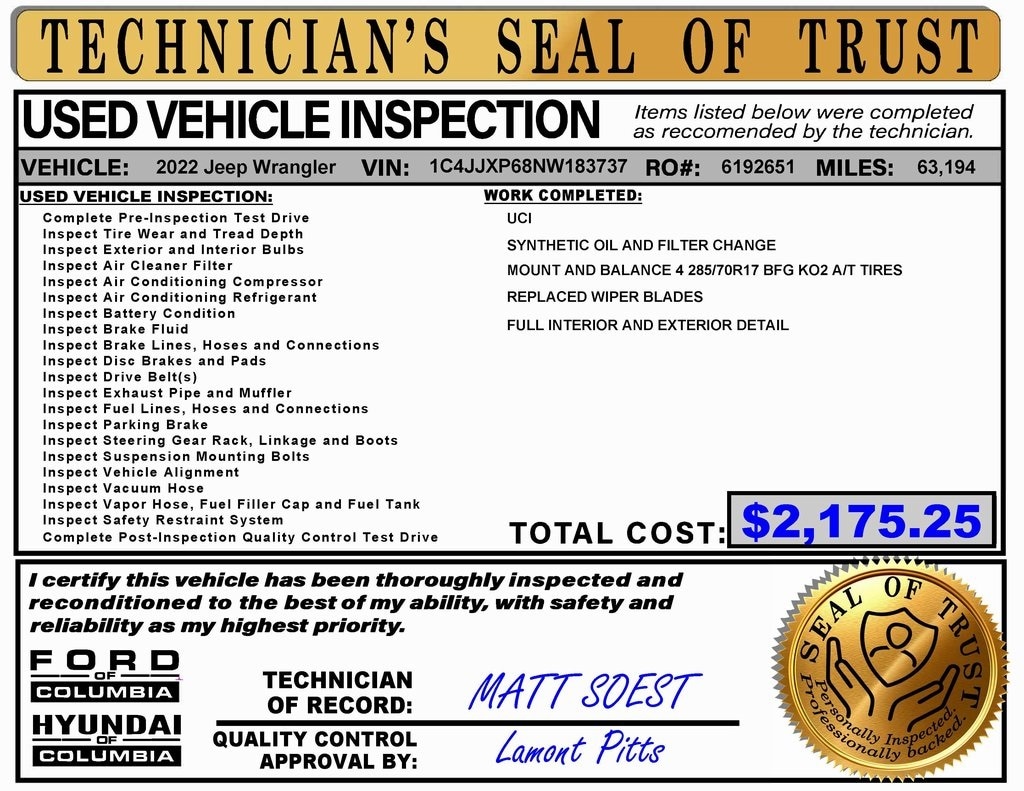 Every used vehicle at Hyundai of Columbia is carefully inspected and priced fairly â€" no gimmicks, no pressure, just good people and great cars. We believe buying a vehicle should be simple, straightforward, and enjoyable from start to finish. That’s why our non commissioned sales team is here to answer your questions honestly, help you explore your options, and make sure you drive away confident in your decision. Whether you’re shopping for your first car, upgrading your family ride, or looking for a reliable truck, we’ve got something for everyone. Stop by Hyundai of Columbia today and experience car buying the way it should be â€" friendly, transparent, and built on trust.
